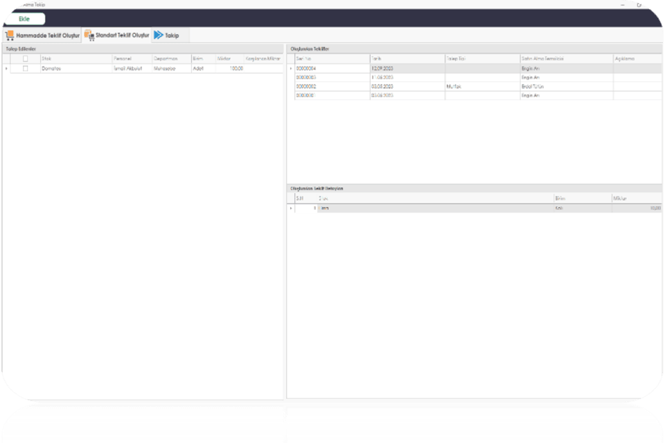 İşletmenizin Satış&Satın alma kısmından başlayarak, müşterinize sevk edilmesi dahil olmak üzere aradaki süreci takip eden, çalışanlarınızın ve makinelerinizin performans ölçümlerini yapabilen bir izlenebilirlik projesidir.