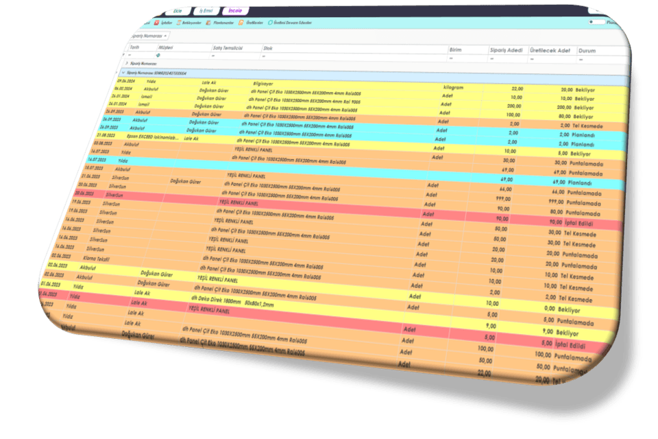 işletmeniz içerisindeki siparişten, sevkiyata kadar olan süreci detaylı olarak takip eder. Bu süreçte oluşan aksaklıkları belirler ve performans ölçümleri yapar. Departmanlar arasındaki iletişimi güçlendirir ve tek bir çatı altında bilgileri toplayıp program içerisinde iletişimlerini sağlamış olur. Çalışanlarınız tek tuşla ihtiyacı olan veriye erişip bu doğrultuda planlama yapabilir. İşletme sahipleri ise üretim, satış&sipariş, personel verimliliği konusunda raporlar ışığında bilgi sahibi olur.
