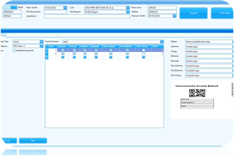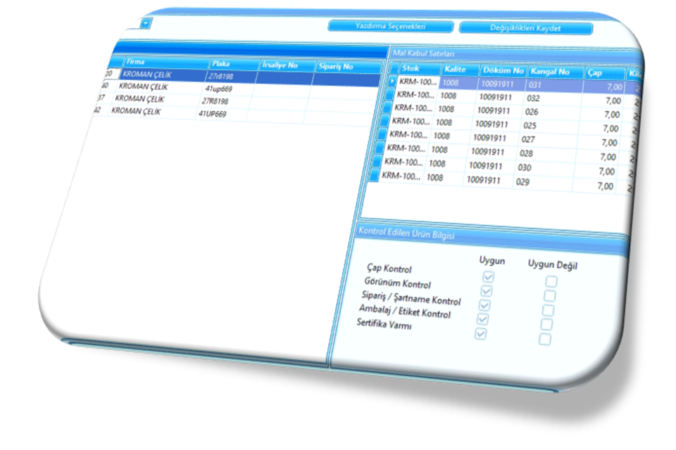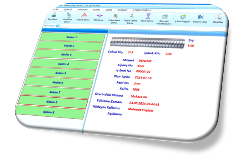 Türkiye'nin tek CARES uyumlu izlenebilirlik programı, İşletmenizin üretim alanında mal kabulden sevkiyata kadar olan süreci en ince detayına kadar izleyebilen ve nihai üretilen ürünün; hangi makinelerden geçtiği, hangi personel tarafından üretildiği, hangi döküm numaralarının kullanıldığı, kullanılan hammaddenin kalite test sonuçları vb. bir çok bilgiye ulaşabileceğiniz kapsamlı bir programdır.